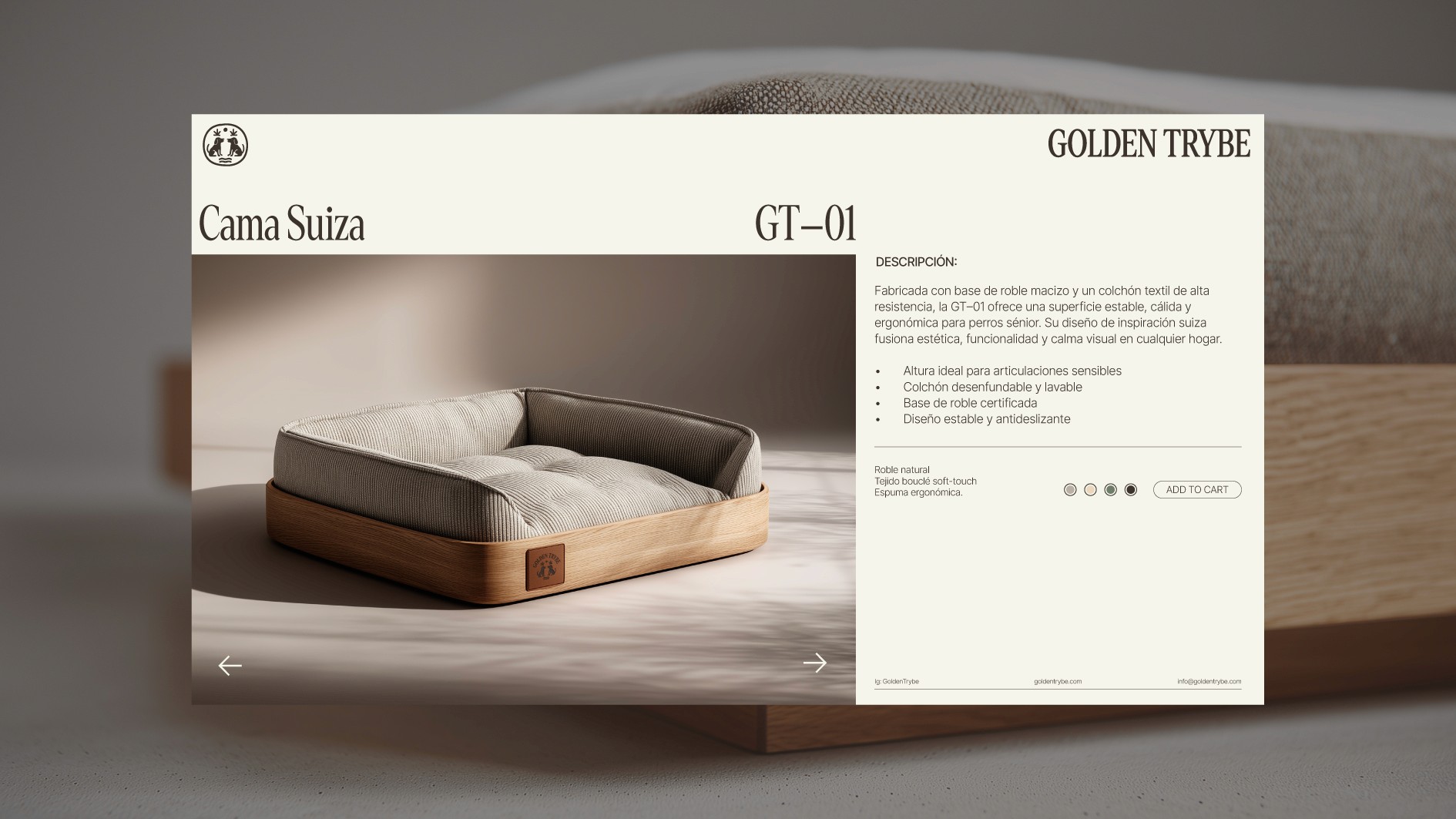 Golden Trybe is a premium pet-furniture brand focused on improving the daily comfort of senior dogs through thoughtful design, durable materials, and a calm aesthetic inspired by Swiss interiors.